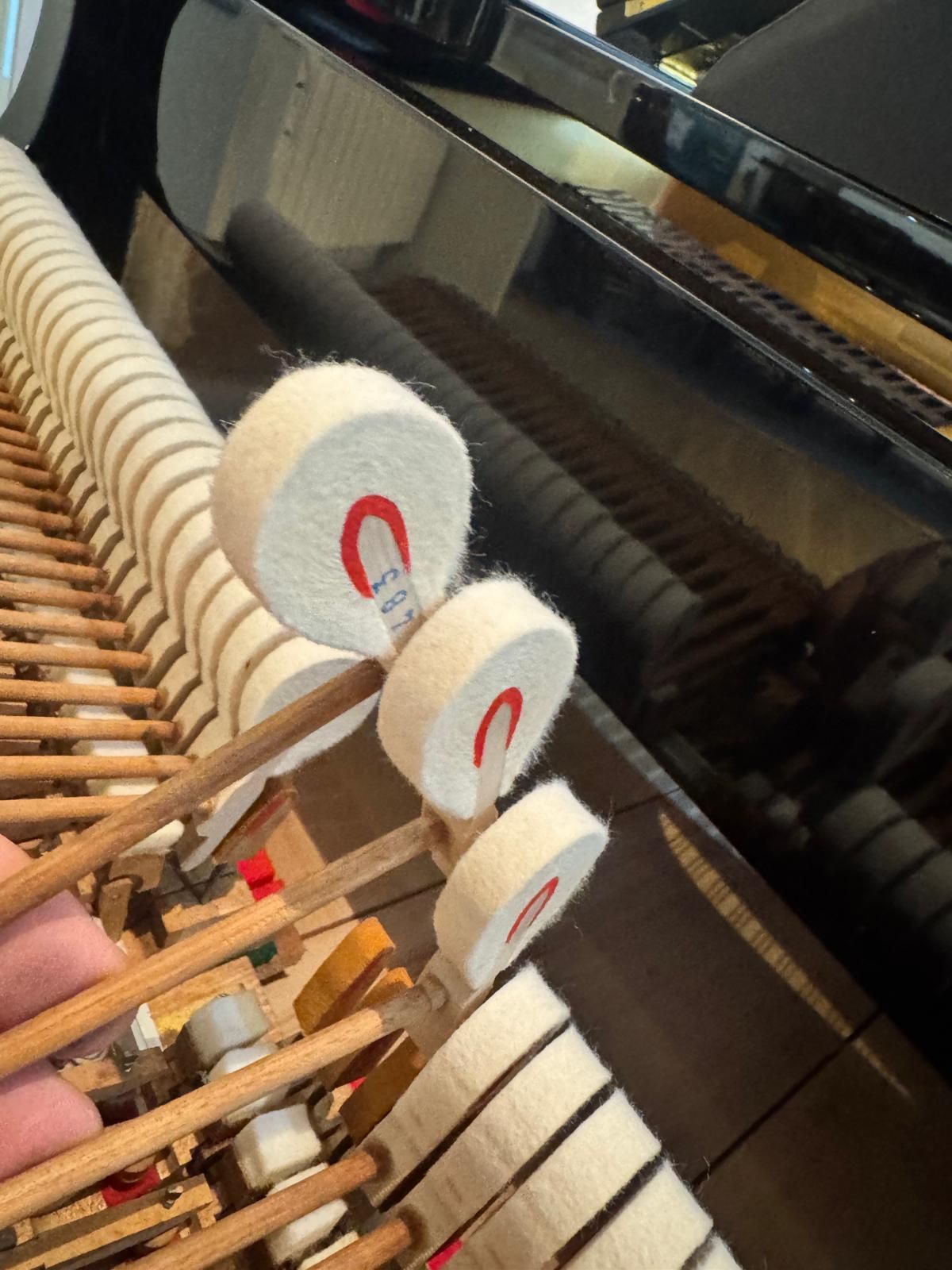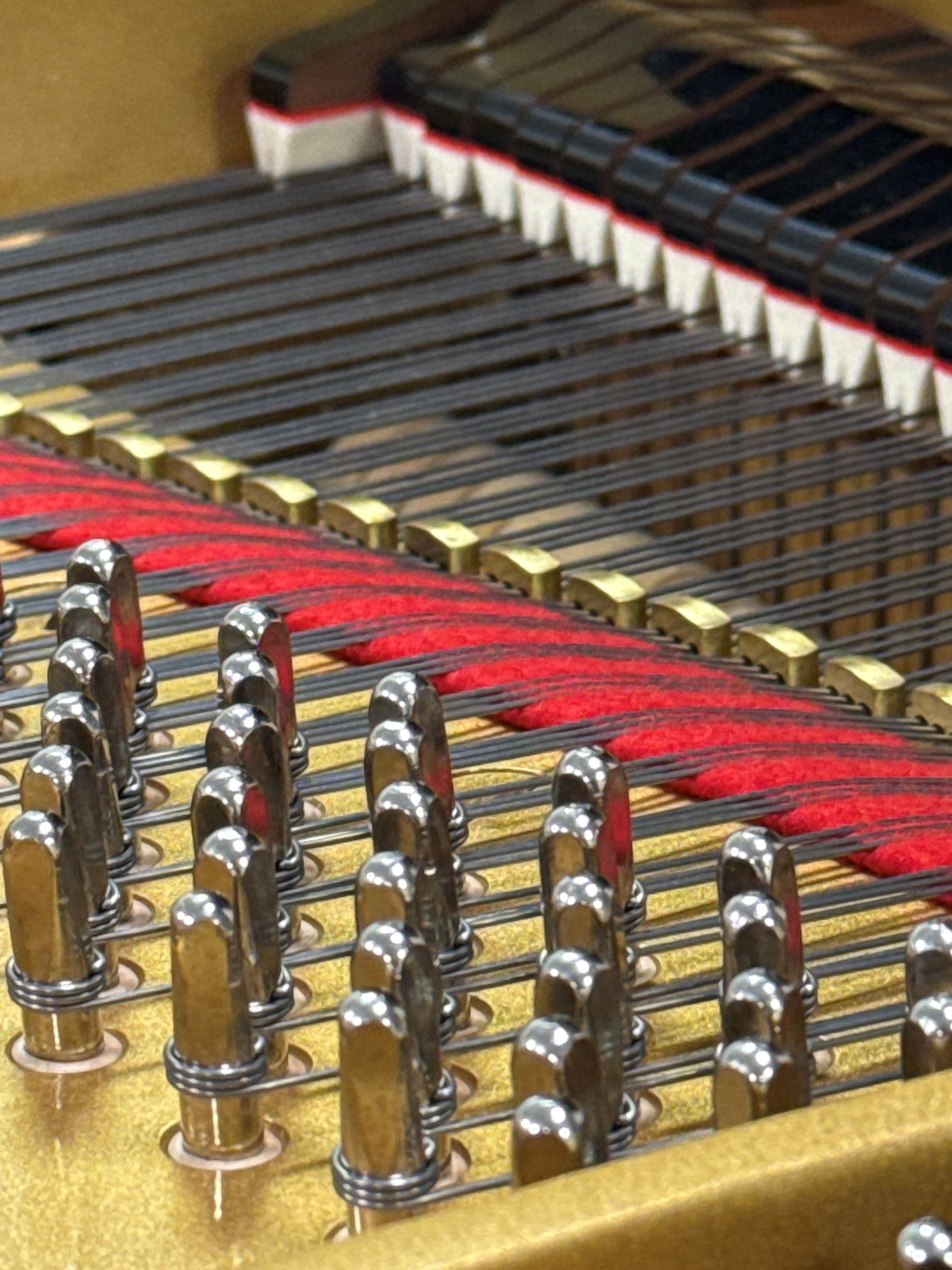 This is a 3-pedal model, the touch is very well weighted, and the tone is leans towards the mellow side of the scale but close to the middle. All pins have been polished; the dampers and bass strings have been replaced in the last 5 years too.