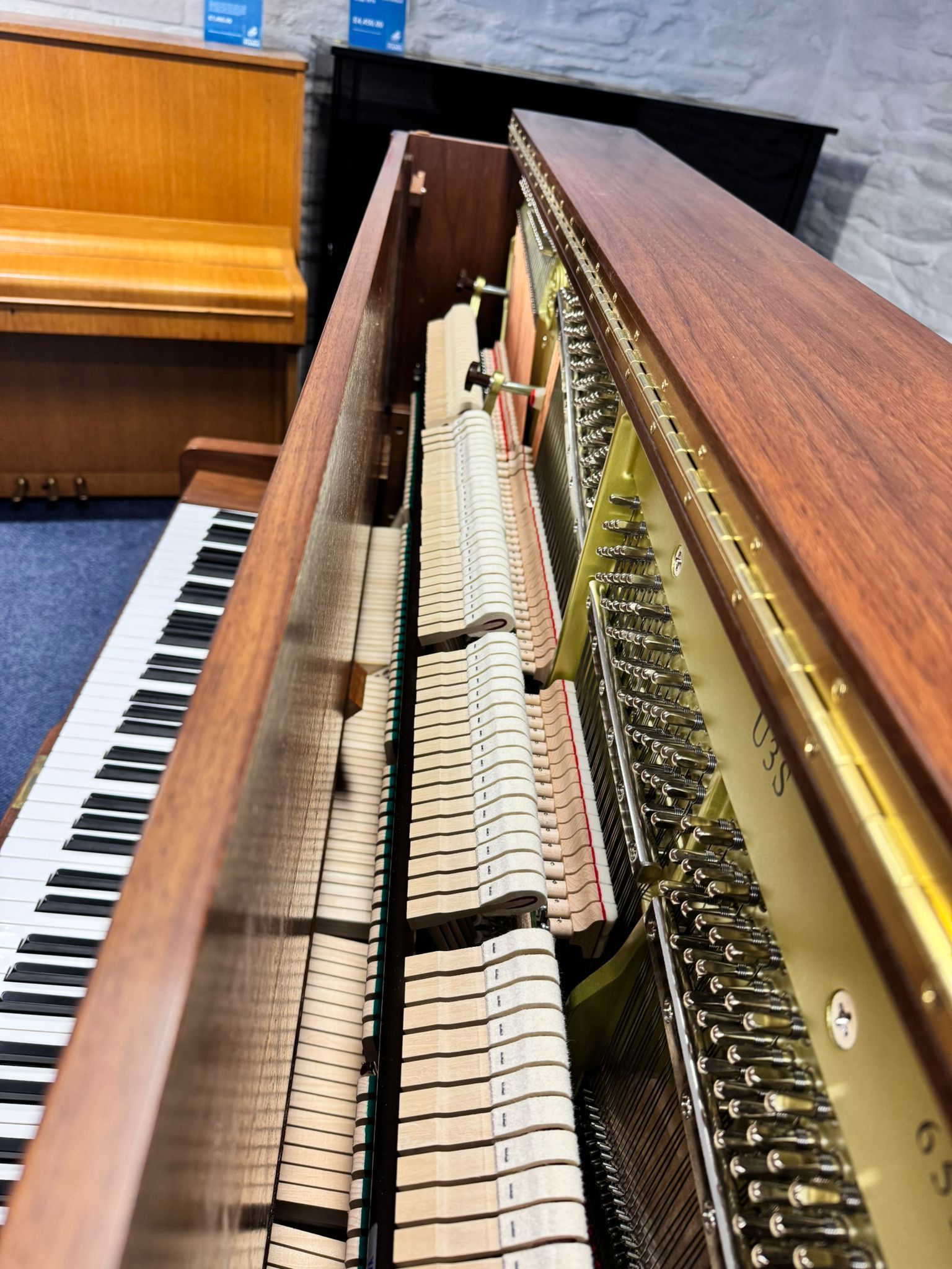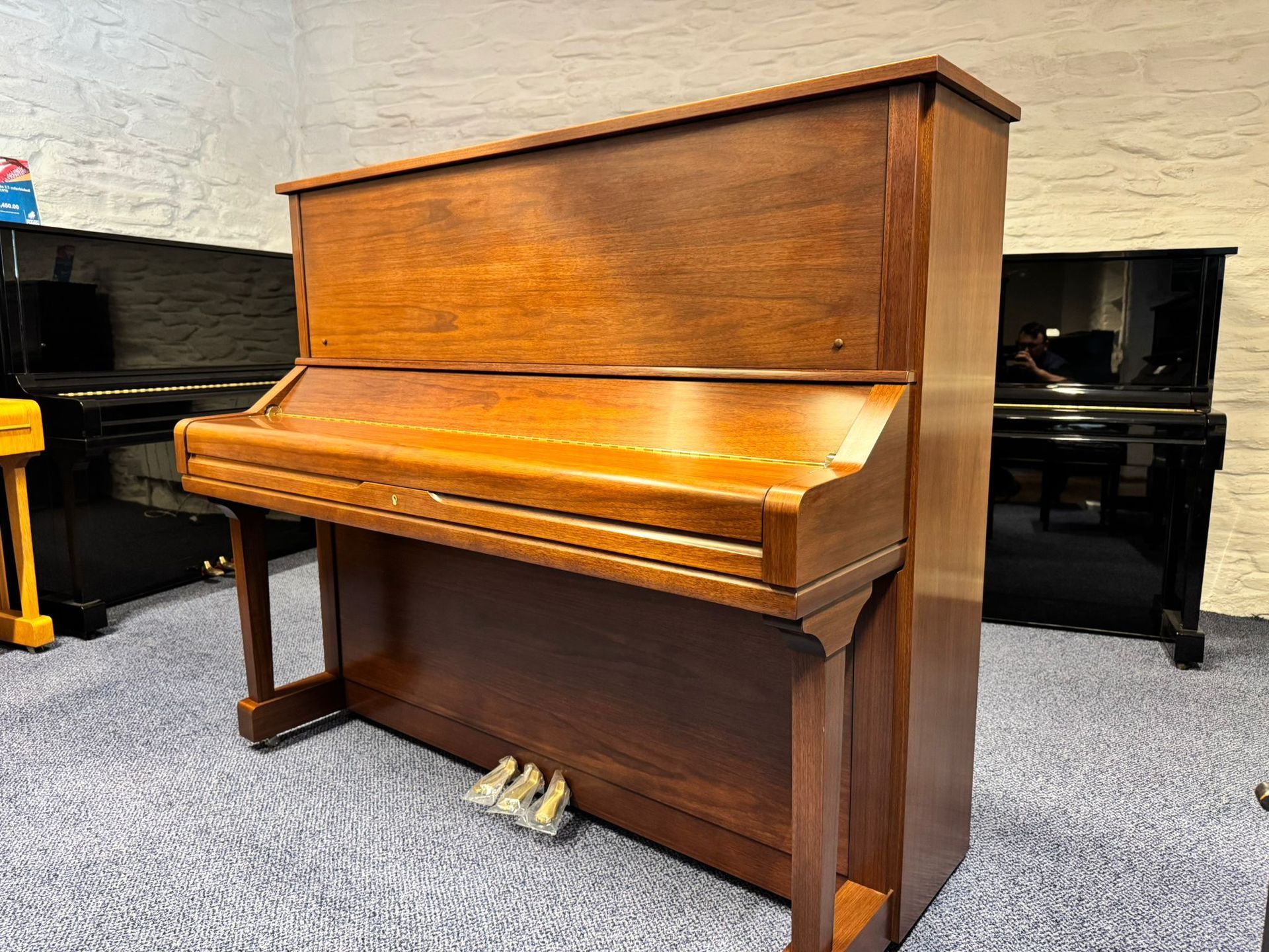 In place of the typical muffler pedal, the U3S middle pedal is ‘sostenuto’. Like a grand piano middle pedal, Sostenuto is for selective note/chord sustain. This is a key reason for this instrument being so highly respected in practise rooms in school music departments.
